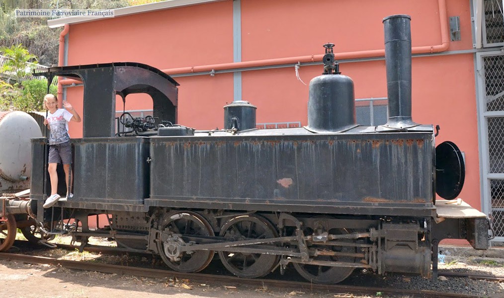 Issue d’une série de onze exemplaires construits par Schneider en 1878 et 1881, dont 9 furent livrés au Chemin de Fer du Port de la Réunion (CPR). Numérotée 8, elle a participé à l’inauguration du CPR en 1882, et effectué ses derniers trains (marchandises) en 1963. Exposée ensuite derrière la bibliothèque départementale de la Réunion à Saint-Denis jusqu’en 1989.