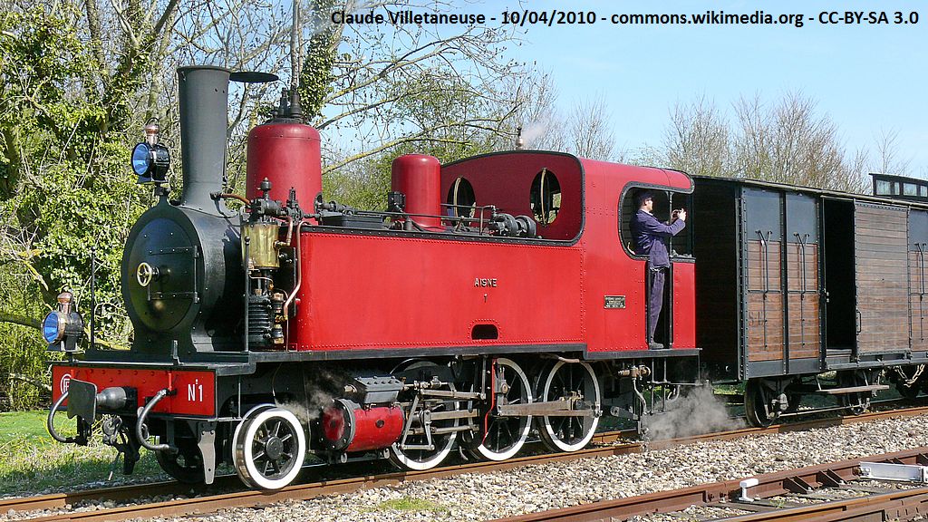 Livrée pour la Compagnie des chemins de fer départementaux de l’Aisne (CDA) et numérotée 1. Retirée du service en 1961, la locomotive est acquise par un particulier en vue de créer un musée à Verneuil (Marne). Ce projet n’ayant pas abouti, le CFBS achète la machine en 1971. Restaurée en 2006. Hors-service depuis fin 2022.