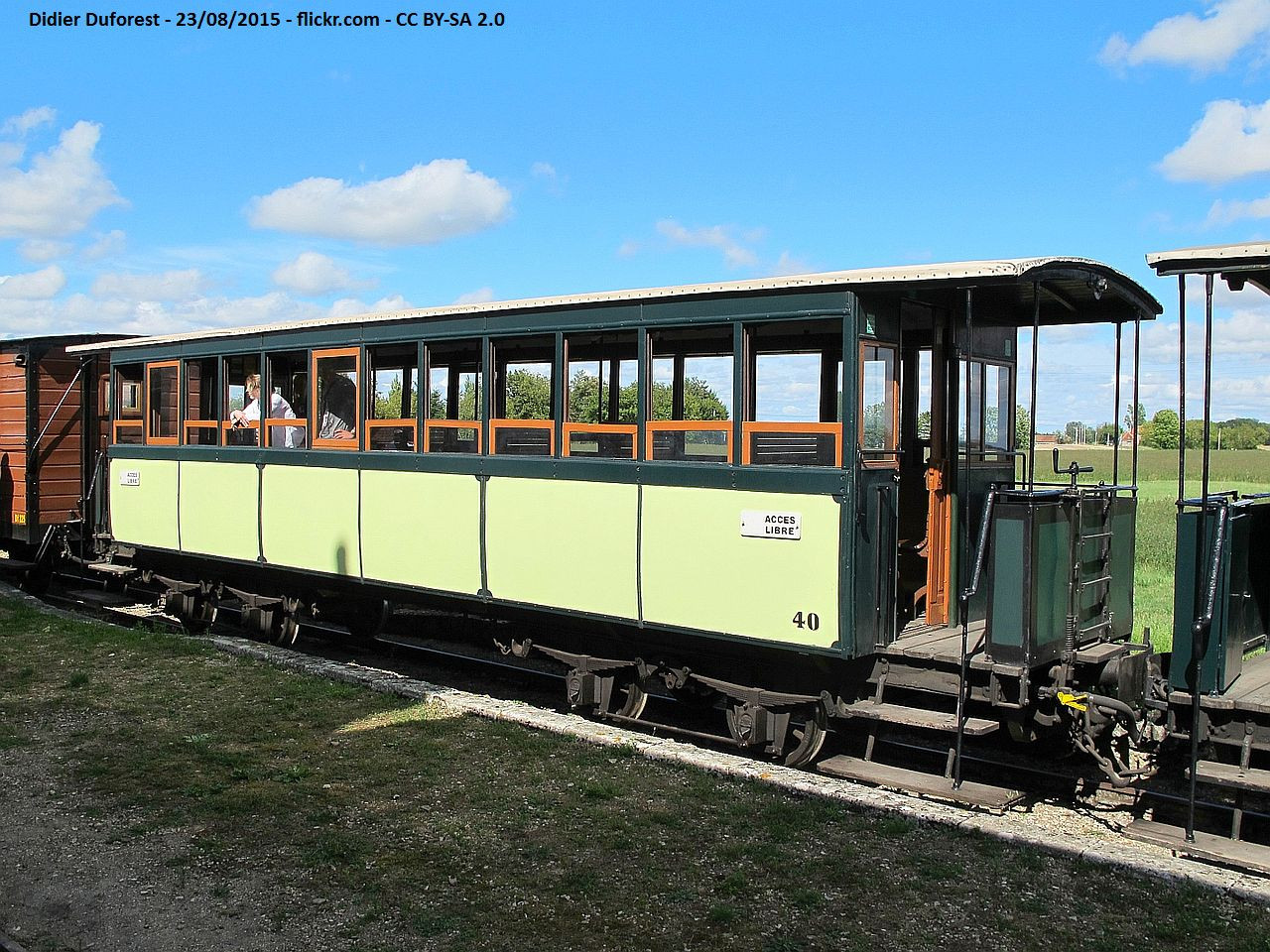 Livrée pour les Tramways de la Sarthe, vendue en 1939 au P.O.C. Propriété de la FACS, confié au TTBB depuis 2008. Précédemment confiée au Vivarais.
