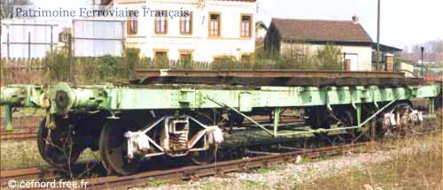 Ancien plat à ridelles. Préservé au CEF Nord depuis 1989, son châssis était déjà banané lors de son arrivée. Provient du site Alsthom de Raismes où il est était numéroté 4.